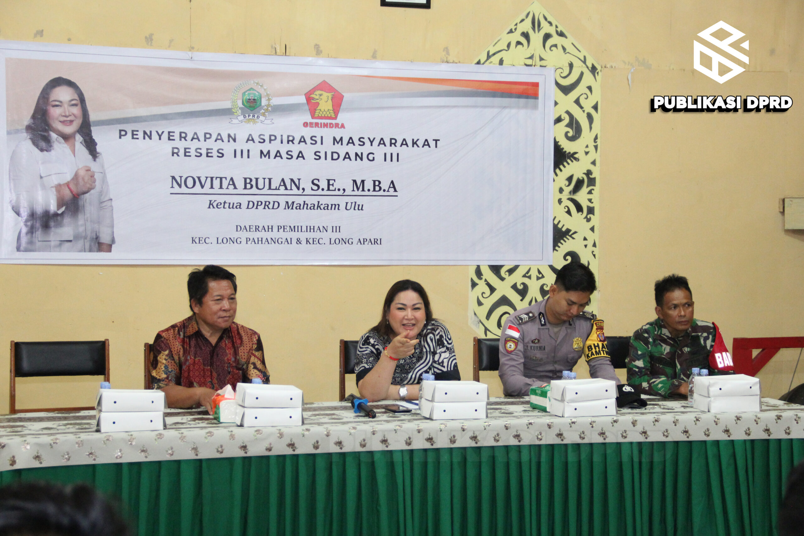 Melalui reses, setiap anggota DPRD Mahakam Ulu mendatangi warga dari satu wilayah ke wilayah lainnya sesuai dengan daerah pemilihannya. Kali ini, Novita Bulan berkunjung di 4 kampung yaitu Kampung Long Apari, Kampung Noha Tivab, Kampung Tiong Ohang, serta Kampung Tiong Bu’u Kecamatan Long Apari yang termasuk dalam daerah Pemilihan Mahakam Ulu III.