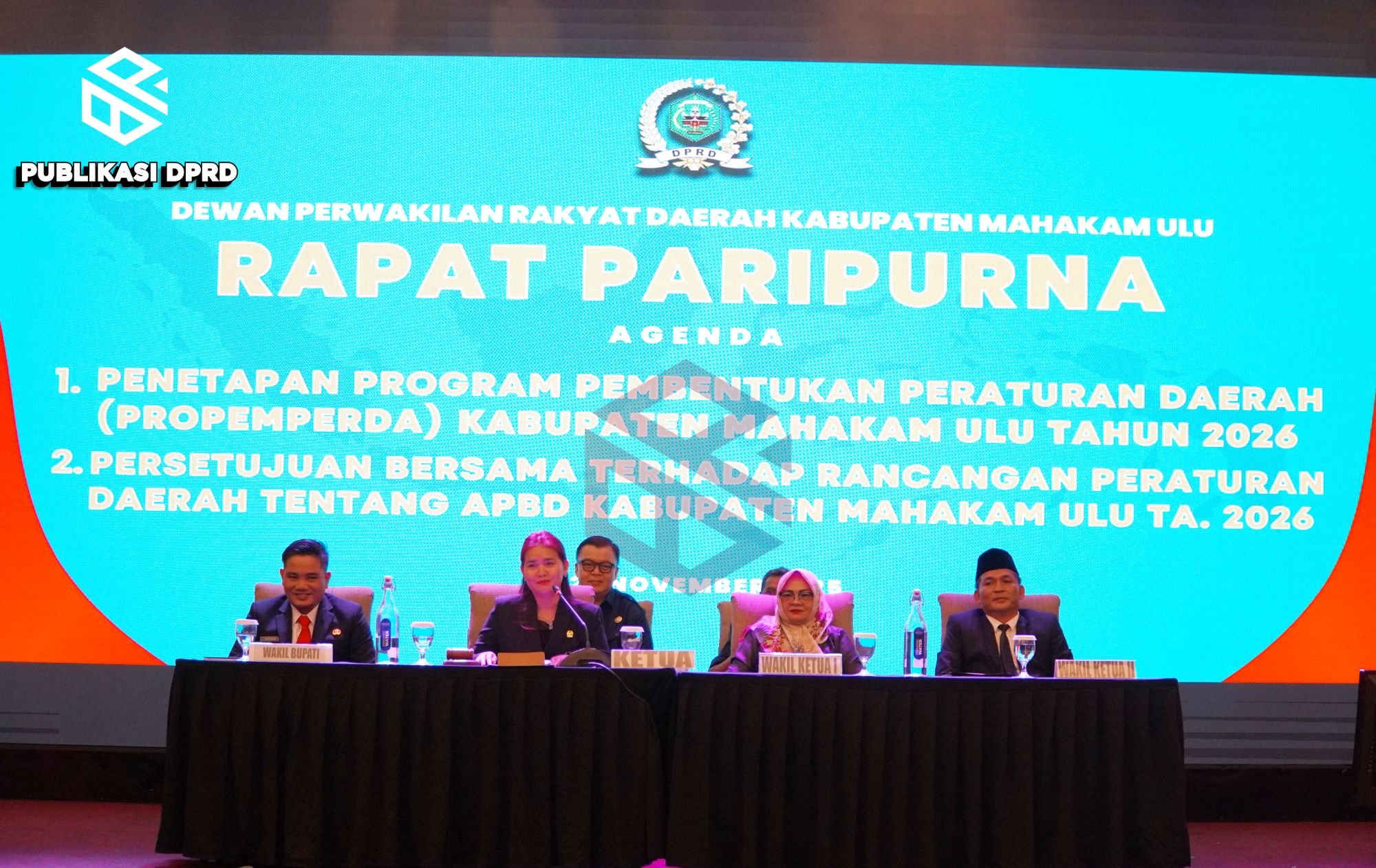 SAMARINDA – Dewan Perwakilan Rakyat Daerah (DPRD) Kabupaten Mahakam Ulu (Mahulu) menggelar Rapat Paripurna dengan agenda Penetapan Program Pembentukan Peraturan Daerah (Propemperda) Kabupaten Mahakam Ulu Tahun 2026, di Ballroom lantai 17 Hotel Aston, pada hari Kamis (27/11/25).