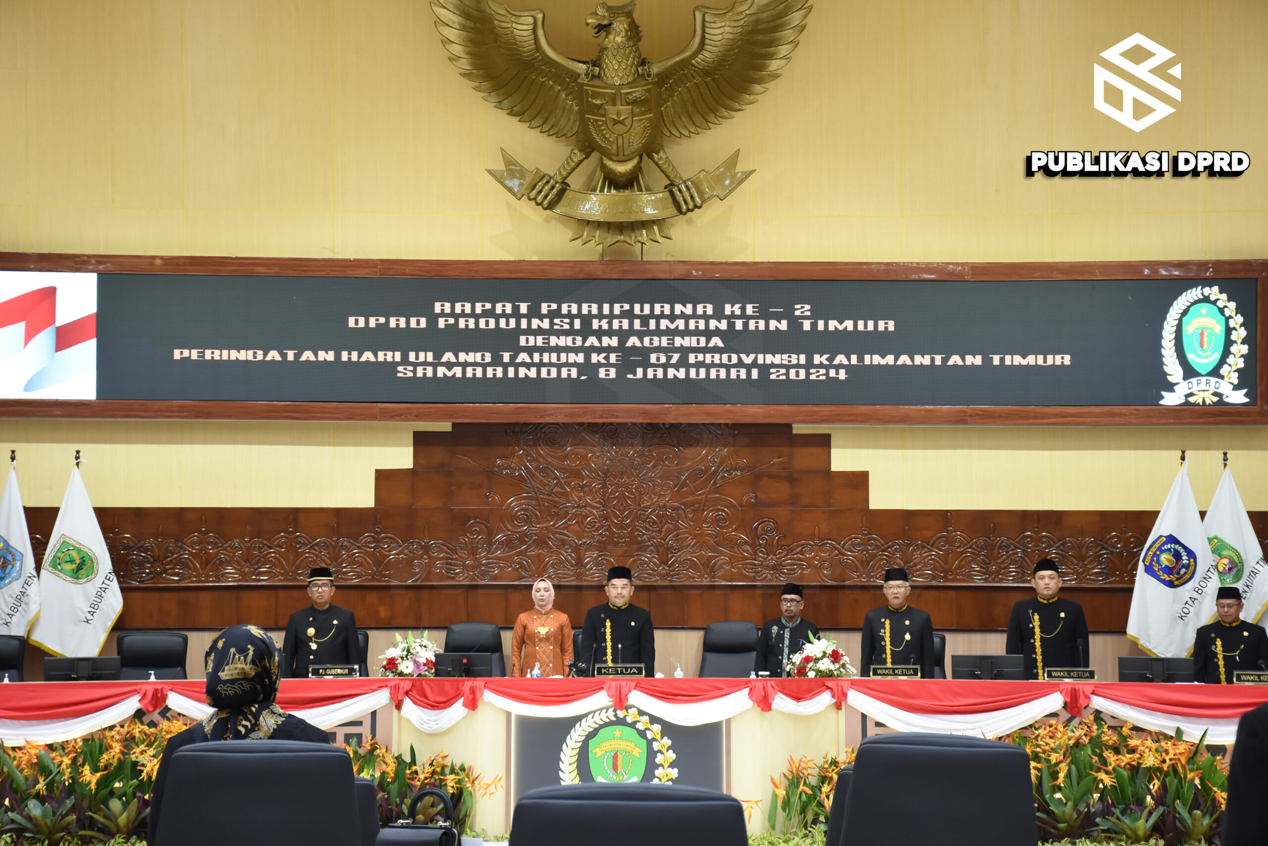 Paripurna yang berjalan dengan khidmat tersebut diawali dengan pembacaan doa serta beberapa kesenian berupa tarian tradisional Kaltim yang telah disiapkan oleh pihak penyelenggara. Setelahnya dilanjutkan dengan selayang pandang (sekilas pandang) dan ucapan memperingati HUT Provinsi Kaltim yang ke-67 oleh Pimpinan Dewan, Ketua Komisi dan Sekretaris Dewan Provinsi Kaltim.